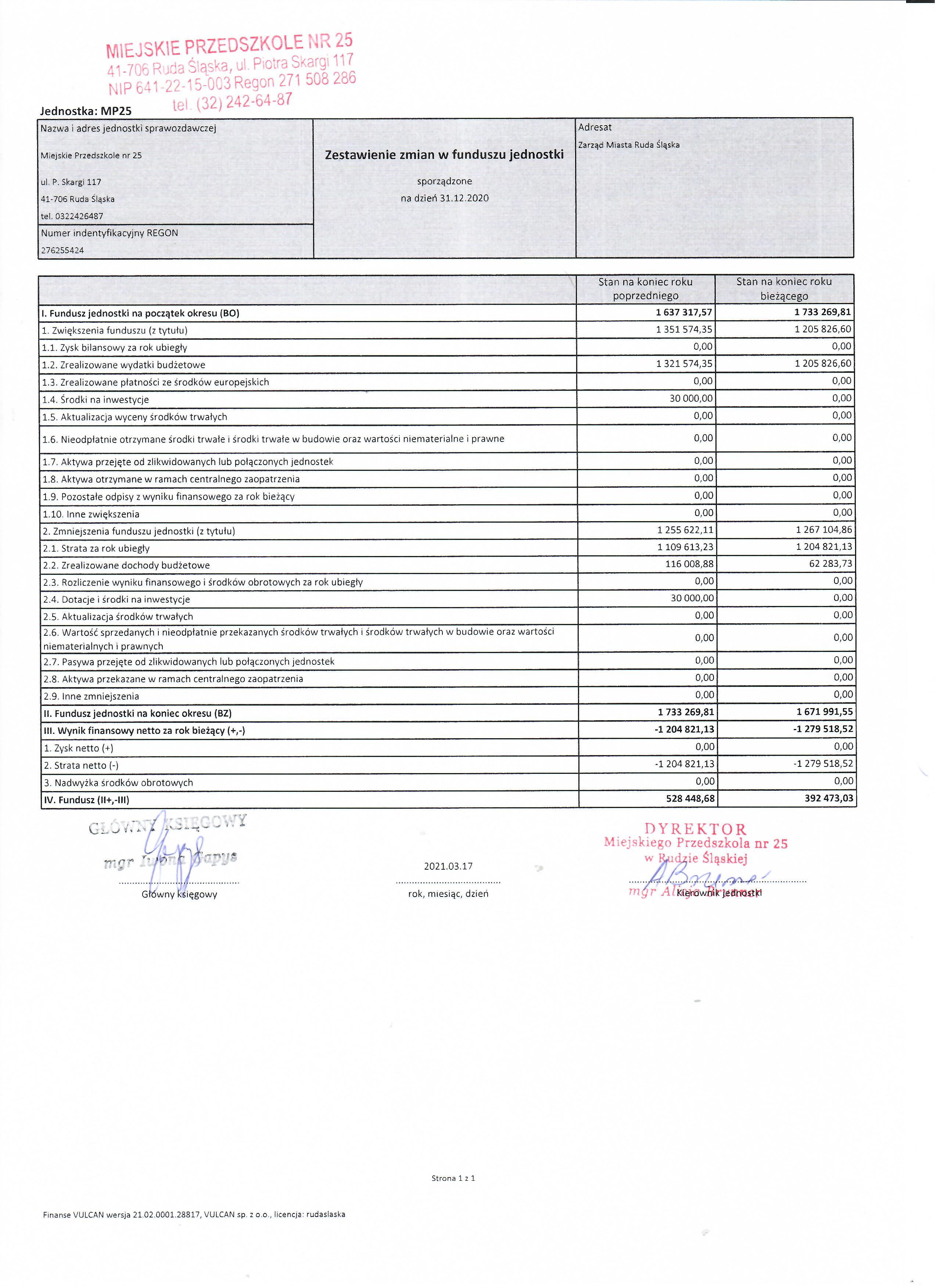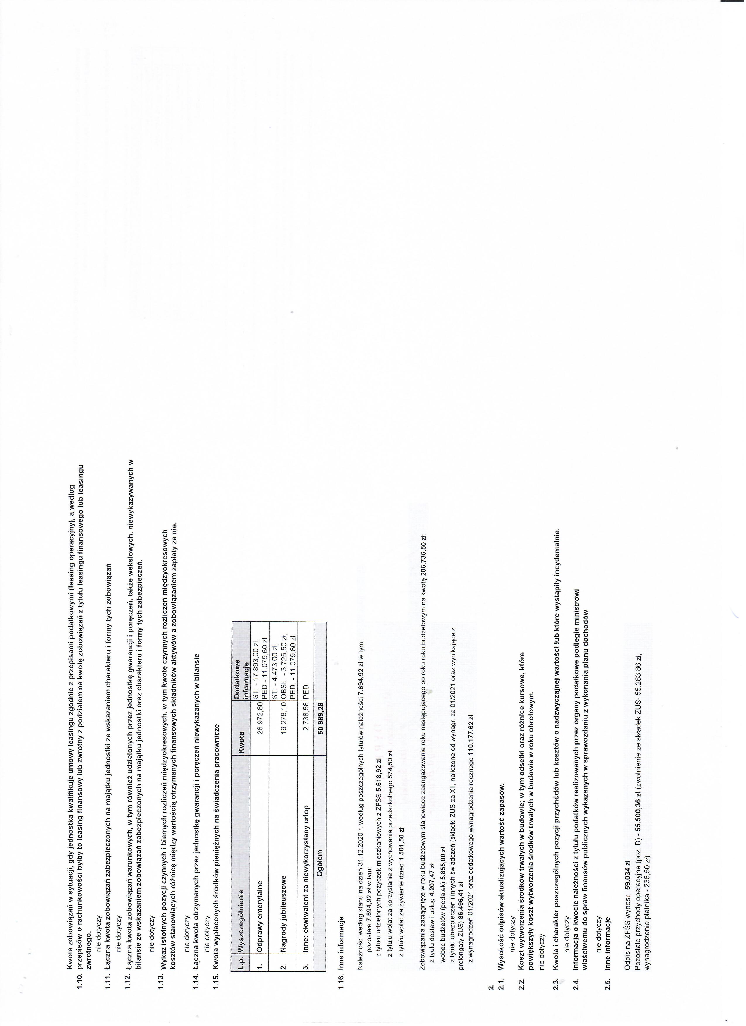 Sprawozdanie finansowe za 2020 rokUtworzono: 06 czerwiec 2021 | Poprawiono: 06 czerwiec 2021 | Opublikowano: 06 czerwiec 2021 | Iwona Gapys | Drukuj | E-mail | Odsłony: 1546 Sprawozdanie finansowe za 2020 rok (...) Załączniki: MP25 bilans .jpg[ ]1082 kB2021-06-06 08:23 MP25 informacja dodatkowa 2 .jpg[ ]770 kB2021-06-06 08:23 MP25 informacja dodatkowa 3 .jpg[ ]596 kB2021-06-06 08:23 MP25 informacja dodatkowa 4 .jpg[ ]377 kB2021-06-06 08:23 MP25 informacja dodatkowa 1 .jpg[ ]567 kB2021-06-06 08:23 MP25 rachunek zysków i strat .jpg[ ]976 kB2021-06-06 08:23 MP25 skonsolidowany bilans .jpg[ ]931 kB2021-06-06 08:23 MP25 zestawienie zmian w funduszu jednostki .jpg[ ]832 kB2021-06-06 08:24